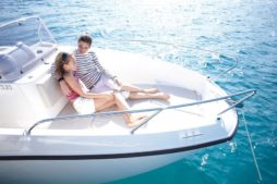 Большая удобная площадка для загорания мгновенно говорит вам, что лодка создана для отличного отдыха. Добавьте к этому вместительную палубу, сиденья для второго пилота и подушки, комфортабельную подпалубную кабину с биотуалетом, и все готово для солнечной морской прогулки.