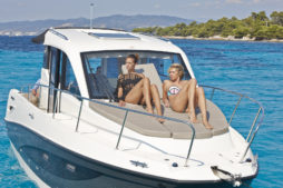 Как бы вы хотели, чтобы выглядел кокпит? Несомненно так: регулируемое кормовое сиденье предлагает 3 конфигурации: вертикальная спинка, шезлонг и большая солнечная терраса. Это позволит вам выбрать отдых на ваш вкус: посиделки с друзьями, обед на свежем воздухе, возможность просто отдохнуть и расслабится, почитать, позагорать и все что пожелаете! Место помощника капитана имеет такие же функции. Хотите еще больше пространства? Без проблем! Расположитесь на солнечной террасе на носу и наслаждайтесь прекрасным солнечным днём