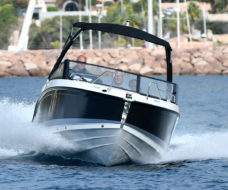 Спортивный вариант отличается стильным черно-белым дизайном с синей сигнальной линией вдоль корпуса. Для большего комфорта и удобства там есть стойка для буксировки воднолыжника, роскошный стол в кокпите, душ в кокпите и стерео с 2 громкоговорителями.
