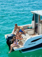 С Activ 875 Sundeck, c достаточно большим кокпитом для всех. Сиденья кокпита преобразуются в большой диван 1,9 х 1,6 м с прямым доступом к воде, а верхняя зона каюты преобразуется в рекордную 2,25 х 2,25 м солнечную палубу с регулируемой спинкой, самая большая в своем классе.